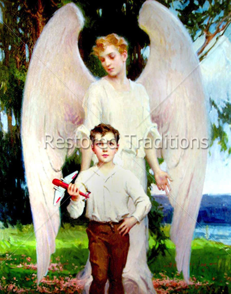 Charles Chambers made this artwork showing a guardian angel maintaining a watchful and protective eye over a small boy.
