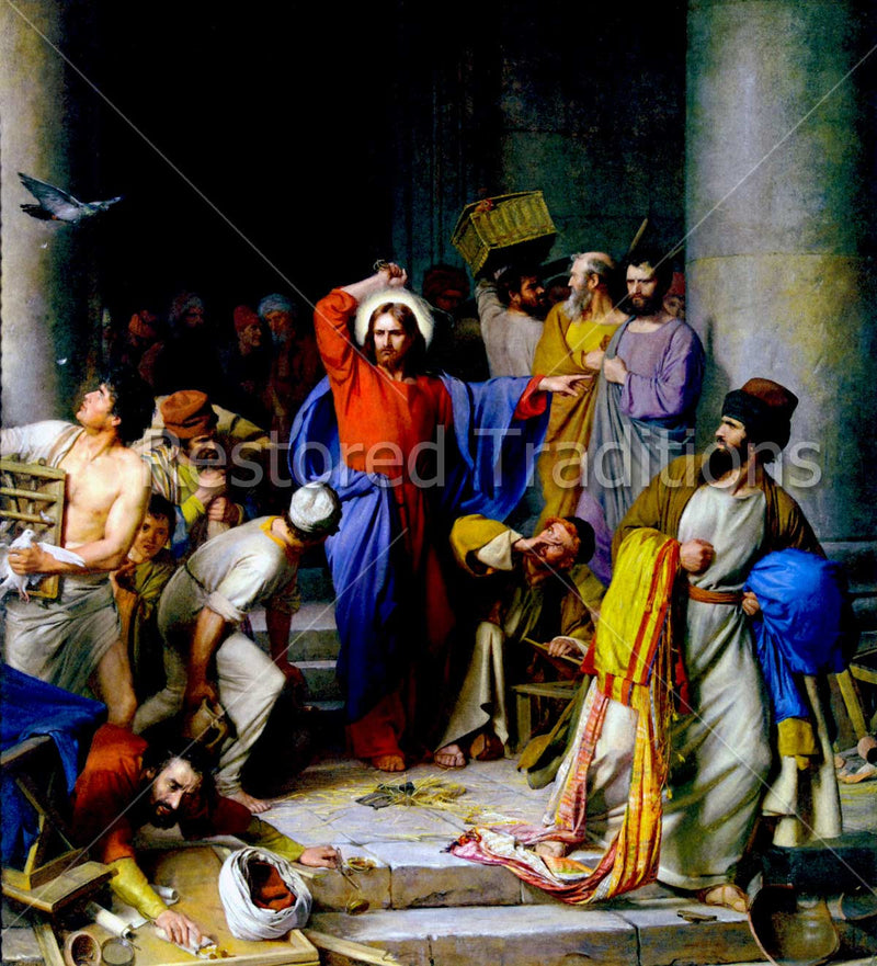 Jesus cleanses the Temple of the money changers, in this artwork by C. Bloch.