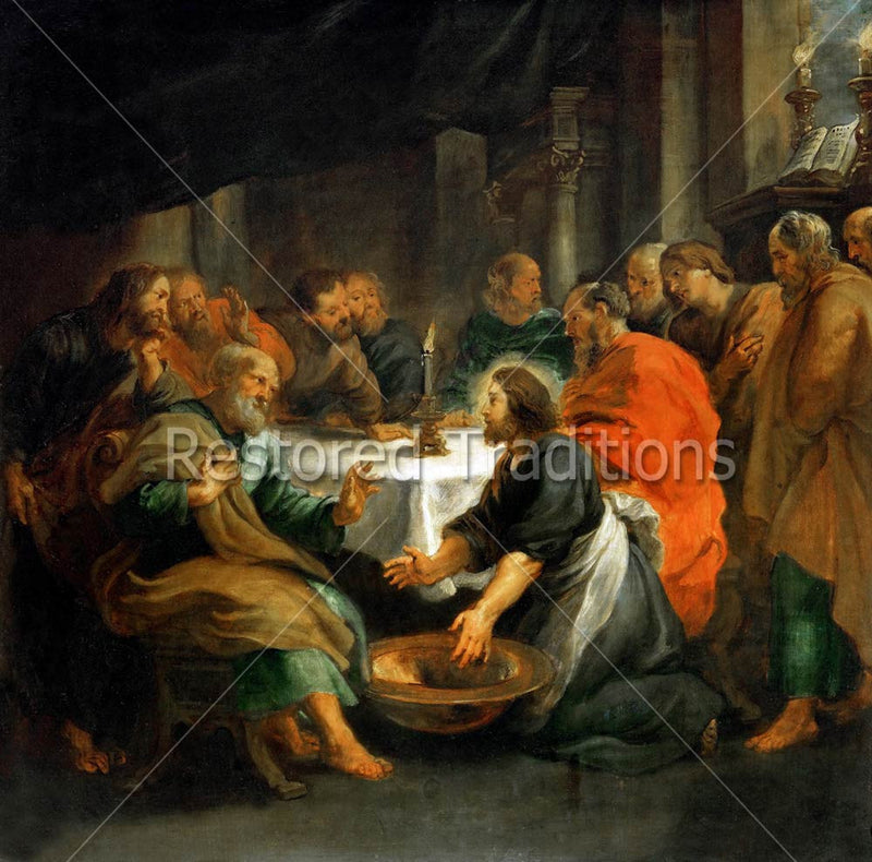 Peter is at first reluctant to allow the Savior to wash his feet in this moment after the Last Supper, so fittingly captured by the artist Peter Paul Rubens.