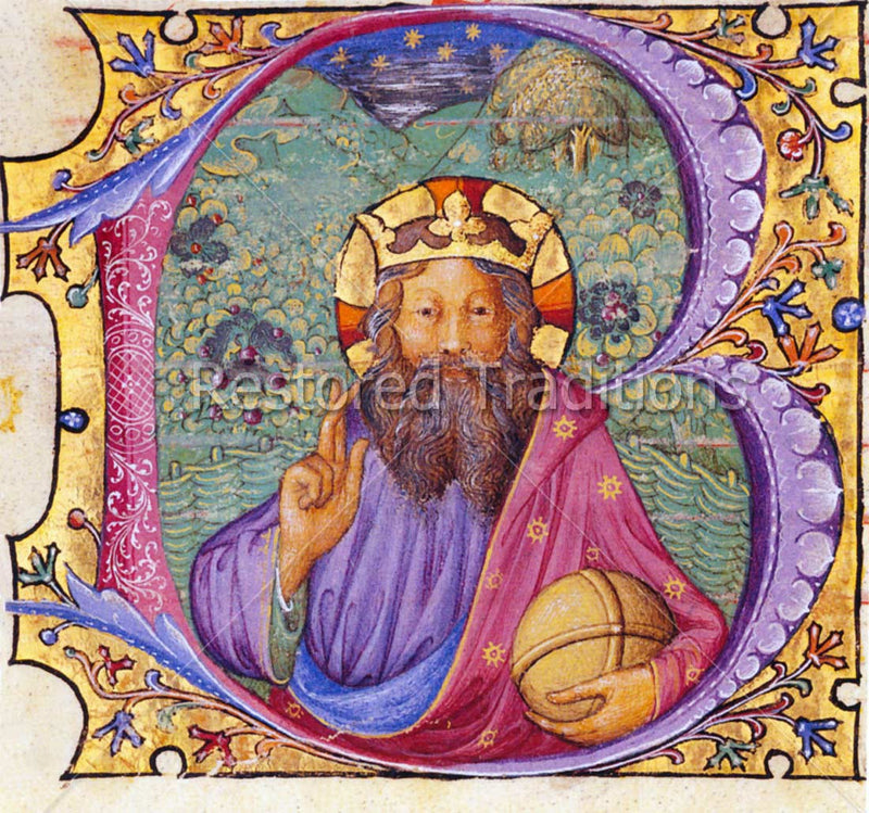 This illuminated letter artwork by S. Verona shows Jesus Christ the King giving a blessing.