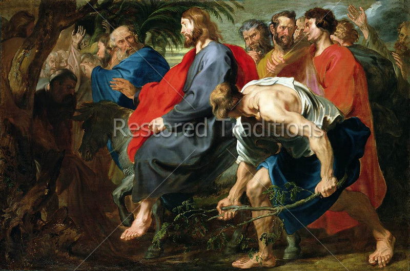This artwork by Van Dyck depicts Our Savior, triumphantly riding a donkey into Jerusalem a week before His Crucifixion.