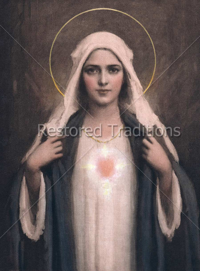 The Virgin Mary shows us her sorrowful and Immaculate Heart in this moving artwork, by American artist CB Chambers.