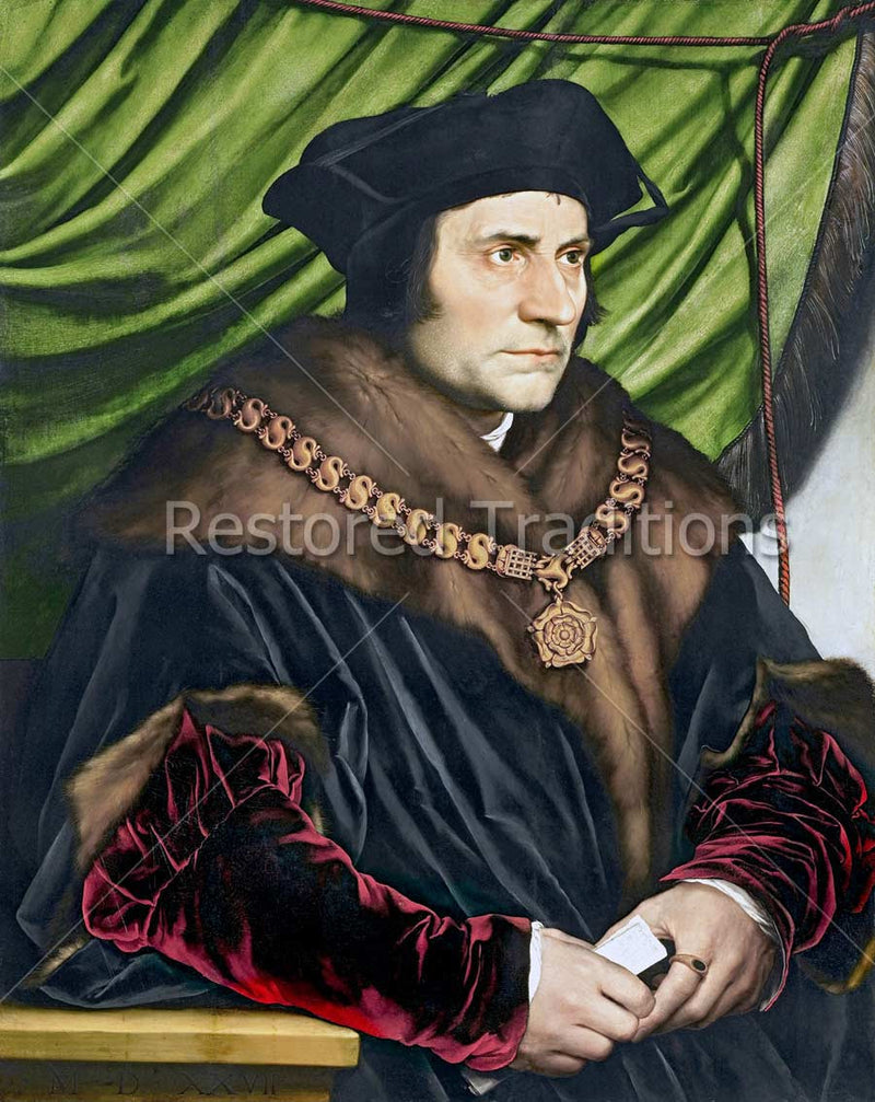 This is a portrait of Saint Thomas More, the High Chancellor of England who was martyred by Henry VIII, by H. Holbein the Younger.